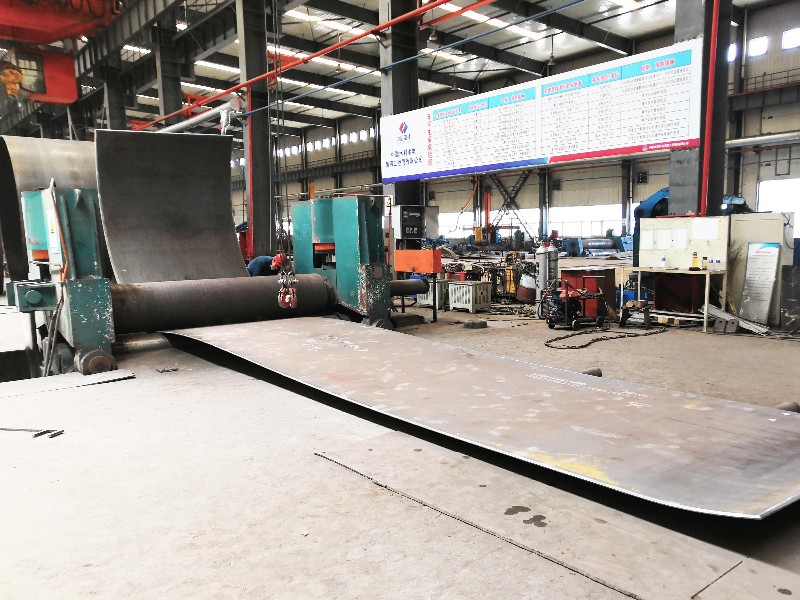 該項目分為I標(biāo)段和V標(biāo)段,共計48套。該項目塔筒為四段式,筒體長度達87.41米,塔筒下段最大直徑為4.732米,鋼板厚度較厚,筒節(jié)橢圓度不容易把握,且該工程塔筒重量、長度、直徑都比以往制作的塔筒大很多,現(xiàn)場吊裝比較困難,制作難度加大。該項目從一開始,公司領(lǐng)導(dǎo)就高度重視,為節(jié)省運輸成本,選址張家口作為塔筒制造基地。同時,迅速成立太仆寺旗項目部,專門派遣專業(yè)管理團隊,加強項目組織管理工作。