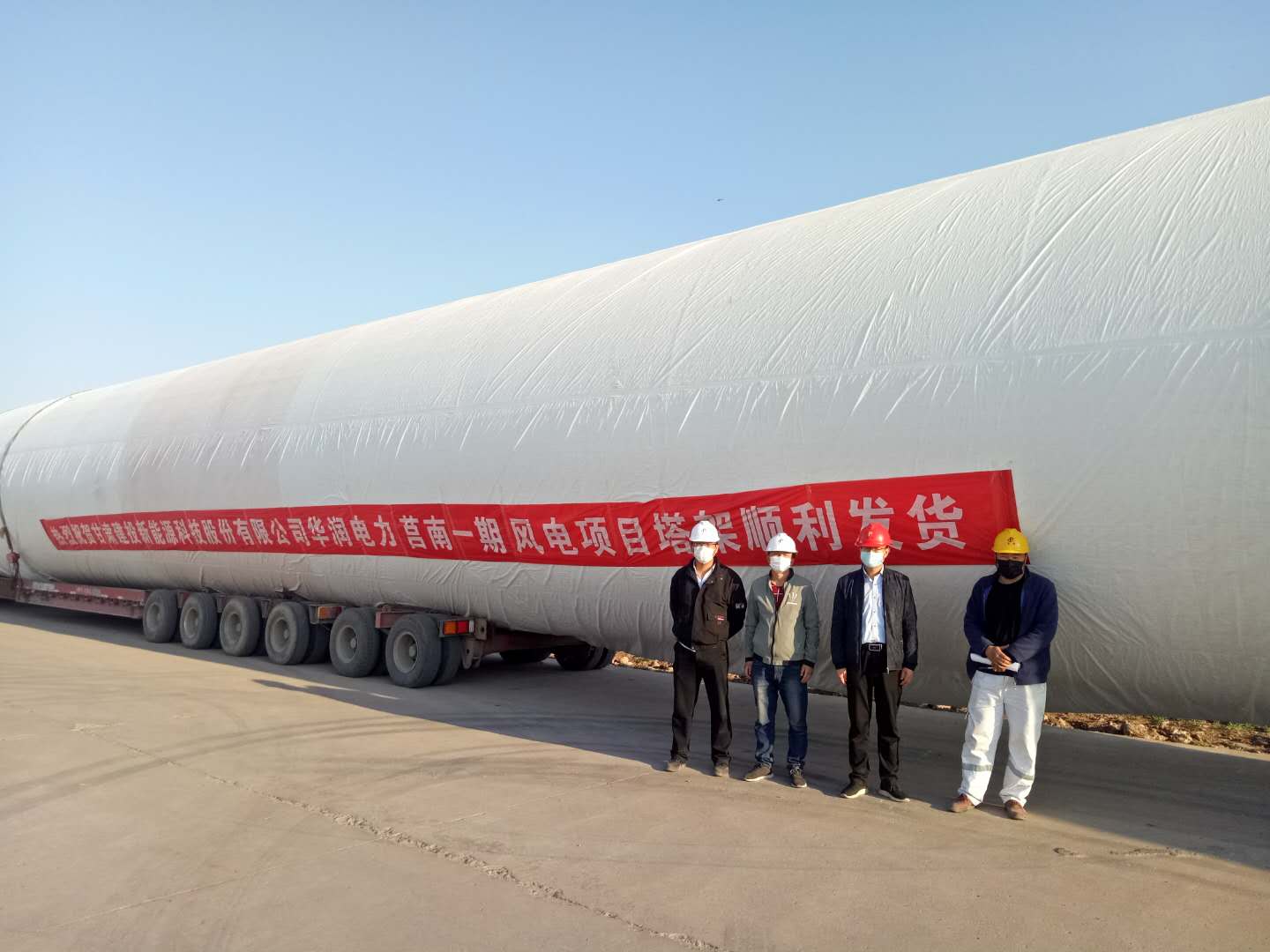 在疫情防控的關(guān)鍵時(shí)期,項(xiàng)目部與業(yè)主積極保持著高頻次聯(lián)系,與運(yùn)輸部門充分溝通,并聯(lián)系疫情管控期間具備運(yùn)輸能力的貨運(yùn)平臺,敲定了首套塔筒的發(fā)貨時(shí)間。在運(yùn)輸車輛到達(dá)公司后,保衛(wèi)部對運(yùn)輸車輛進(jìn)行嚴(yán)格消毒、人員進(jìn)行登記,項(xiàng)目部積極調(diào)配各方人員,在做好個(gè)人防護(hù)的前提下,加班加點(diǎn)完成貨物裝配并順利出廠。