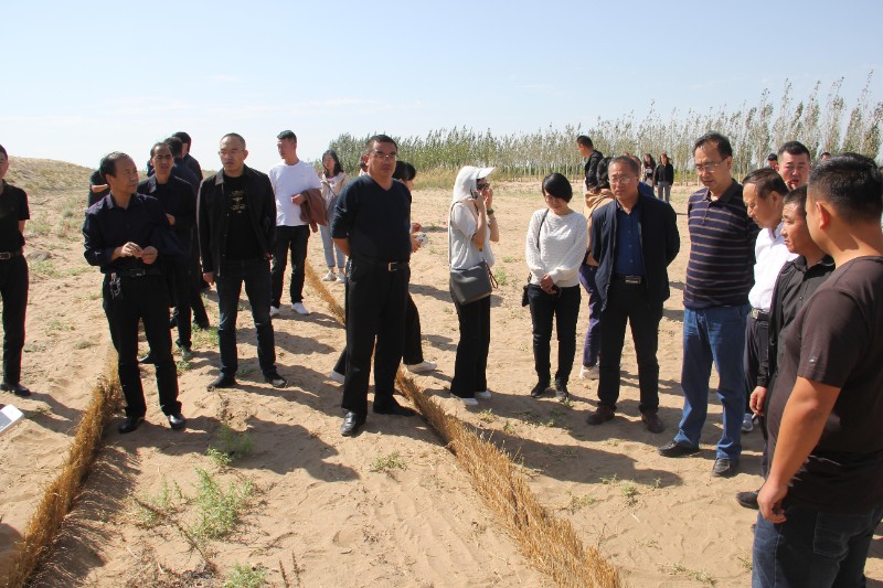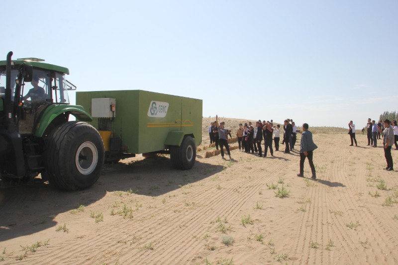 9月19日,培訓(xùn)班全體參訓(xùn)學(xué)員前往古浪縣八步沙林場參觀,學(xué)習(xí)并弘揚(yáng)時代楷模八步沙“六老漢”三代人治沙造林集體困難面前不低頭、敢把沙漠變綠洲的當(dāng)代愚公精神;隨后,前往甘肅建投新能源公司全國荒漠化防治(機(jī)械治沙工程)試驗示范基地觀摩固沙車機(jī)械化壓沙作業(yè),新能源公司研制的多功能立體固沙車和牽引式固沙車,極大地改變了我國防沙固沙工作主要以人工為主、速度慢且效率低下的現(xiàn)狀,參訓(xùn)人員詳細(xì)了解固沙車工作原理,紛紛拍照留念。