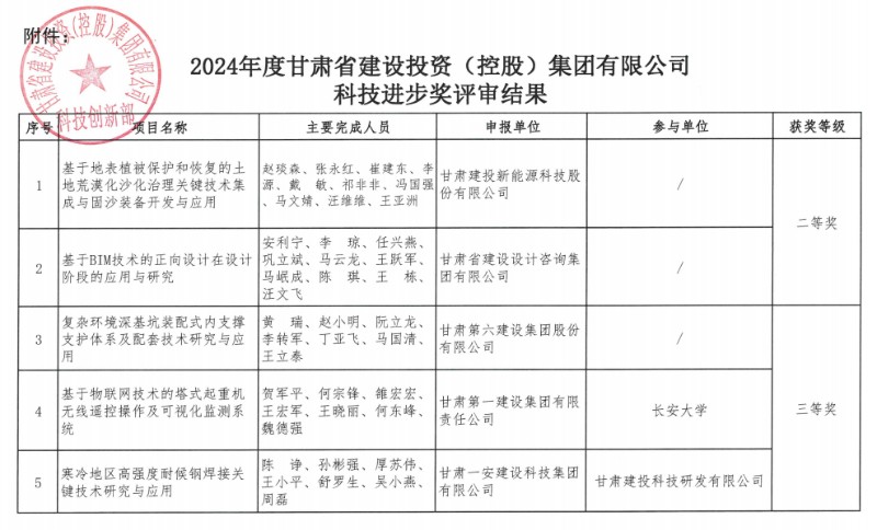 喜訊!我公司承擔(dān)的省科技重大專項(xiàng)科研項(xiàng)目榮獲2024年度甘肅建投科技進(jìn)步獎二等獎