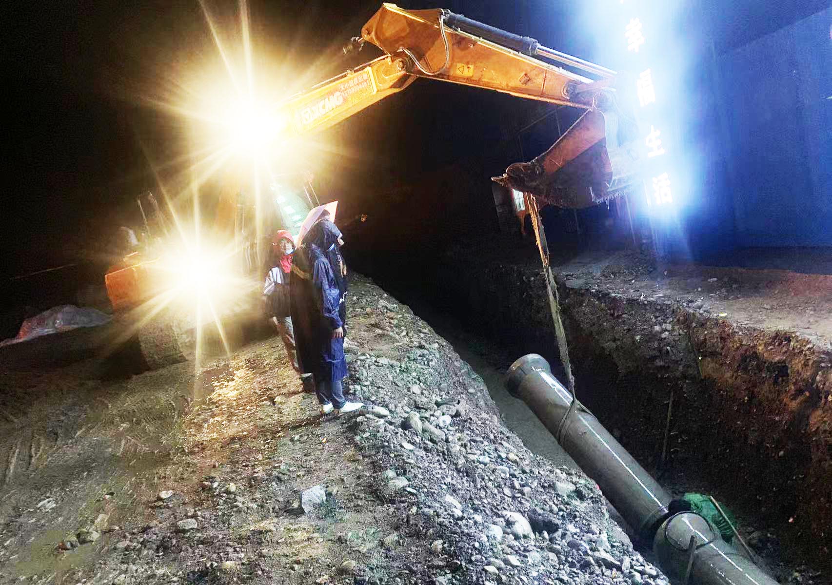項(xiàng)目部全體人員不辜負(fù)每一份信任,迎難而上、連夜冒雨奮戰(zhàn),化壓力為動(dòng)力,爭(zhēng)分奪秒搶工期,加班加點(diǎn)趕進(jìn)度。于7月22日下午6點(diǎn)順利完成醫(yī)養(yǎng)中心雨污水管道與市政管網(wǎng)的銜接,并于次日投入使用。