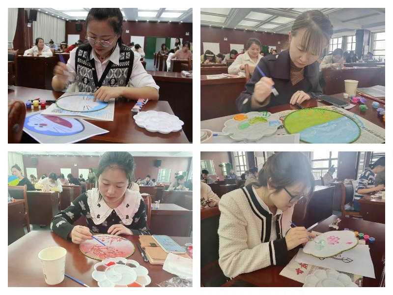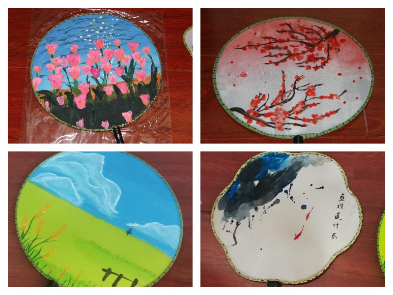 在團(tuán)扇活動(dòng)中,工作人員給大家介紹了團(tuán)扇的文化和發(fā)展歷史以及如何在團(tuán)扇上作畫的方法技巧,并向大家發(fā)放了制作材料,經(jīng)過一個(gè)小時(shí)的精心制作,各種色彩,各種圖案的團(tuán)扇精彩呈現(xiàn)。大家看著自己的作品,心中涌起了滿滿的成就感。