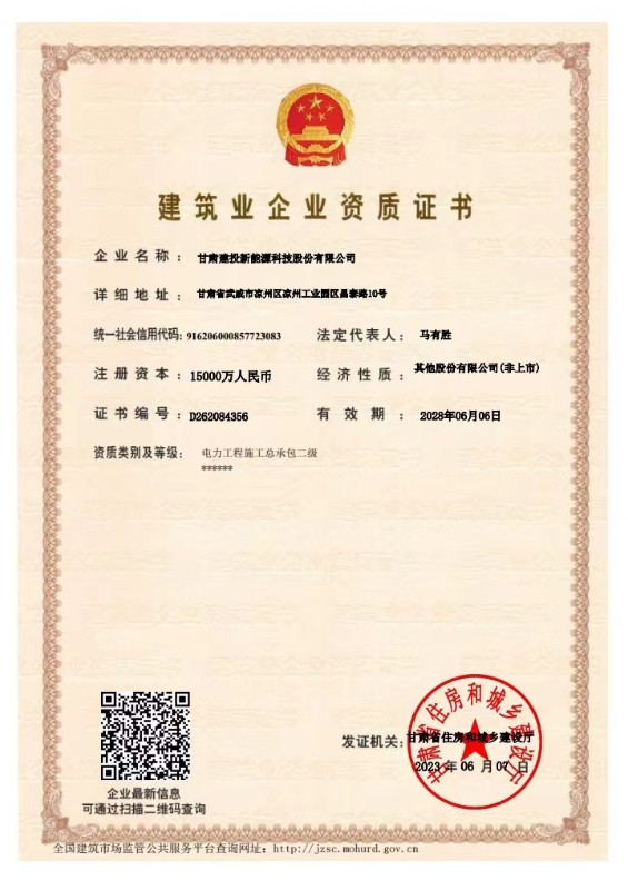 喜報!熱烈慶祝甘肅建投新能源科技股份有限公司資質(zhì)升級成功