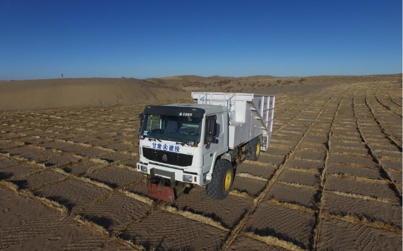 2014年,新能源公司與北京林業(yè)大學(xué)聯(lián)合研制世界首臺(tái)多功能立體固沙車,開啟了固沙裝備的研究試制工作。經(jīng)過多年探索,新能源公司成功研發(fā)制造出LGSV-200多功能立體固沙機(jī)、GSDQ750-132L單向牽引式半隱蔽型草沙障固沙機(jī)、智能化硬質(zhì)草沙障固沙機(jī)等多種國(guó)際領(lǐng)先機(jī)械治沙裝備,并研究制定了與機(jī)械化治沙相關(guān)的各項(xiàng)標(biāo)準(zhǔn)和工法。研發(fā)的治沙裝備先后獲得國(guó)家林業(yè)行業(yè)最高科學(xué)技術(shù)進(jìn)步獎(jiǎng)——梁希林業(yè)科學(xué)技術(shù)獎(jiǎng)二等獎(jiǎng)、中國(guó)林業(yè)創(chuàng)新獎(jiǎng)、全國(guó)沙產(chǎn)業(yè)創(chuàng)新創(chuàng)業(yè)大賽三等獎(jiǎng)、第七至第九屆甘肅省職工優(yōu)秀技術(shù)創(chuàng)新成果一、二、三等獎(jiǎng)、甘肅省第五屆“創(chuàng)新杯”工業(yè)設(shè)計(jì)大賽銅獎(jiǎng)等多個(gè)獎(jiǎng)項(xiàng)。
