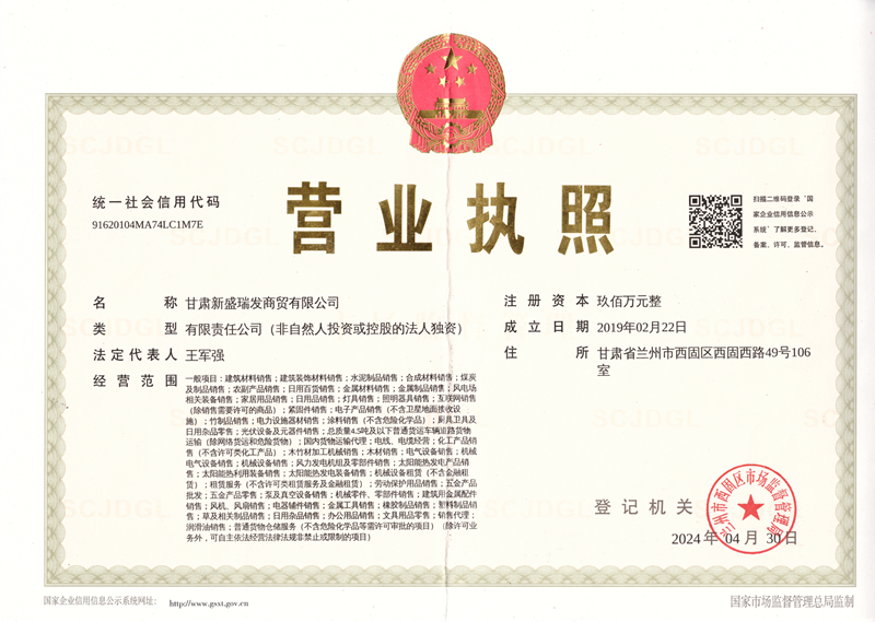 甘肅新盛瑞發(fā)商貿(mào)有限公司營(yíng)業(yè)執(zhí)照