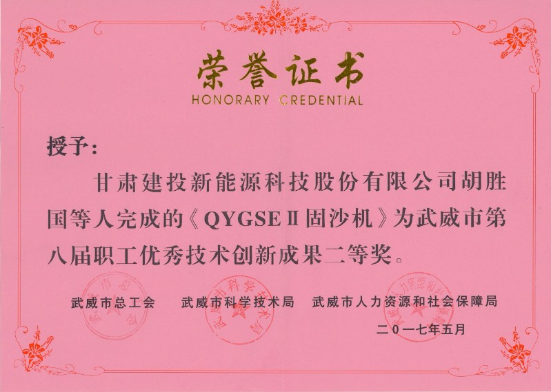 QYGSEII固沙機-武威市第八屆職工優(yōu)秀技術(shù)創(chuàng)新成果二等獎