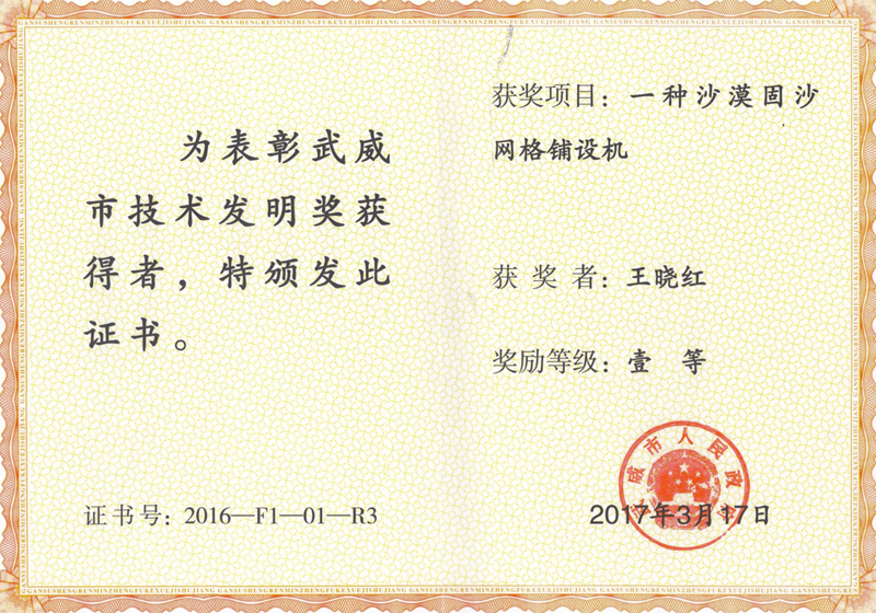 一種沙漠固沙網(wǎng)格鋪設機-獲獎者:王曉紅