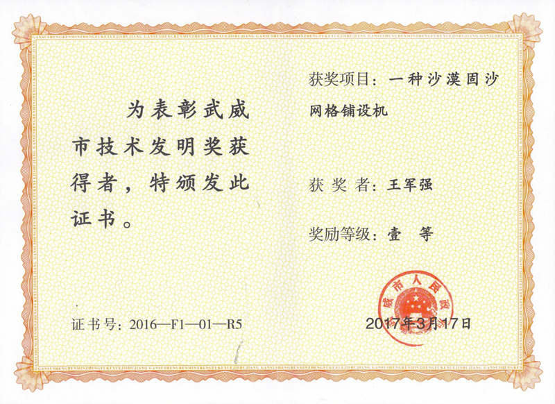 一種沙漠固沙網(wǎng)格鋪設(shè)機-獲獎?wù)撸和踯姀?/span>