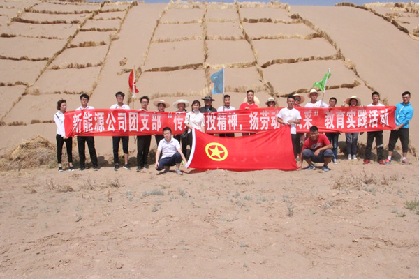 ?。玻埃保改辏吩拢常比?,新能源公司團(tuán)支部舉行的以“傳承建投精神,揚勞動者風(fēng)采”為主題的新員工素質(zhì)拓展訓(xùn)練在公司沙漠基地進(jìn)行。此次活動旨在通過理論學(xué)習(xí)、實踐活動,使新員工充分了解公司治沙產(chǎn)業(yè)的發(fā)展,了解荒漠化治理的重要性、認(rèn)識沙漠化的危害;同時希望通過此次素質(zhì)拓展訓(xùn)練,增進(jìn)新員工間的了解,消除陌生感,快速融入新能源公司這個大家庭中。