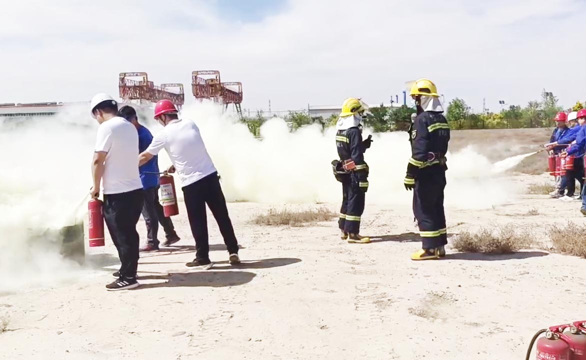 此次活動(dòng)參加人員主要有新能源公司相關(guān)部室職工、園區(qū)各單位觀摩人員,嚴(yán)格按照應(yīng)急救援演練活動(dòng)方案進(jìn)行。演練中,指揮部小組成員各盡其責(zé),緊張而有序的將車間生產(chǎn)人員安全撤離至治沙車間門口空曠場地,消防車、急救車迅速進(jìn)入事故現(xiàn)場進(jìn)行滅火、急救工作。涼州區(qū)消防救援康寧站副站長陳興為大家詳細(xì)講解了如何正確使用滅火器并做了示范演練,現(xiàn)場職工按照使用方法和滅火步驟進(jìn)行實(shí)操滅火;永昌鎮(zhèn)衛(wèi)生院主治醫(yī)師王廷偉系統(tǒng)地講解了急救知識(shí),現(xiàn)場模擬心肺復(fù)蘇搶救的正確操作方法。演練結(jié)束后,全體職工聽取了各位領(lǐng)導(dǎo)對(duì)此次安全生產(chǎn)應(yīng)急演練的精彩點(diǎn)評(píng)及總結(jié)。