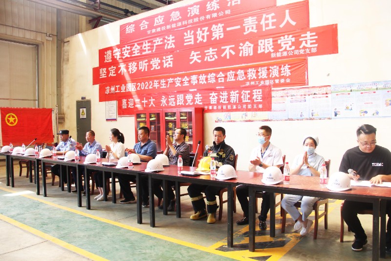 出席本次安全應(yīng)急演練活動(dòng)的領(lǐng)導(dǎo)有:涼州區(qū)團(tuán)委副書記唐詩雨、涼州區(qū)應(yīng)急局黨委委員樊尚文、涼州工業(yè)園區(qū)黨工委委員孫延師、涼州區(qū)消防救援康寧站副站長陳興、涼州工業(yè)園區(qū)派出所所長賈中智、永昌鎮(zhèn)衛(wèi)生院主治醫(yī)師王廷偉、新能源公司副總理李亞軍、新能源公司總工程師張永紅、各事業(yè)部相關(guān)領(lǐng)導(dǎo)。