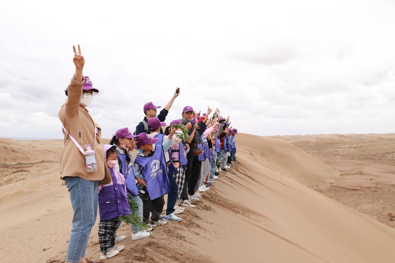 在沙漠徒步活動里,孩子們通過學(xué)習(xí)辨別沙生植物,捕捉沙生動物,學(xué)習(xí)沙漠求生技能等研學(xué)課程,進(jìn)一步了解了沙漠的由來和危害,懂得了治沙的意義與目的。