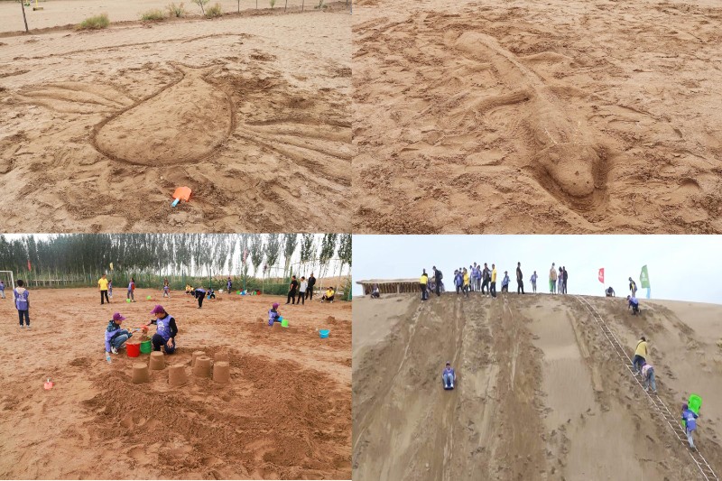 與此同時,制作沙堡、踢沙漠足球等游戲也在陽光運動場如火如荼的進(jìn)行,孩子們臉上洋溢著燦爛的笑容,盡顯朝氣與活力。